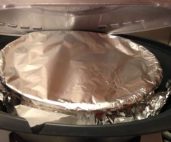 Cover spring form bowl with a sheet of grease proof paper, then alfoil on top. Hold down with a rubber band around the rim. Add 1 litre water to TM bowl and then place Thermomix lid onto Bowl and add varoma onto top. Place springform tin on an egg ring or a pair of crossed chop sticks (to rise up enough not to block air way) into base of varoma. Place lid on on varoma.