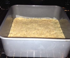 4. Press into a lightly oiled pie plate or tin with removable base. Use the back of a metal spoon to press down or put your hand in a small plastic bag when pressing.