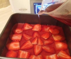 11. Pour on top of cooled Nutty Crust and place in refrigerator for 30-60mins to set. After it sets use fork to make surface slightly rough so Berry Topping does not slide off.