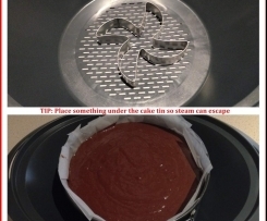 6. Add 1 litre water to bowl. Put Varoma in place with cake tin inside (place something under cake tin to raise it up from the bottom of the Varoma so steam can escape - I use a cookie cutter!).