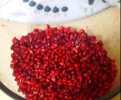 2. Once all seeds have been whacked out of the pomegranates or you have obtained pomegranate seeds by some other means, you will have a large bowl of pomegranate seeds.