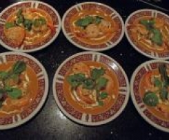 6- To serve, quickly panfry the prawns (2 or3 mn) and dispose on sauce. Garnish with watercress or dill