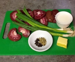 Add sliced green tops of spring onions and salt and cook 5 minutes, 90 C, Reverse + speed soft.9) Mix the cornflour with the water in a cup. Set TM for 2 minutes, 100 C, Reverse + speed 2. Remove the MC and slowly add the cornflour mixture to thicken the kidneys.