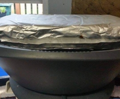 "Closed lid" . (The sauce cooks the meatlaof)Put varoma into place with meatlaof on the top tray. (This cooks for 30mins so add hard veges to bottom part now if they will take this long and other quicker veges further along when needed)