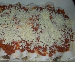 13. Divide chicken mixture evenly amongst the 10 tortillas.  Roll each tortilla up and place in a lasagne dish with the seam underneath.