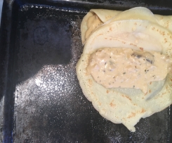 Sprinkle with cheese and bake in oven for 30mins or until cheese melts and crépes are heated through.