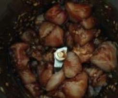 Add chicken pieces to marinade mixture and stir for 2 seconds,