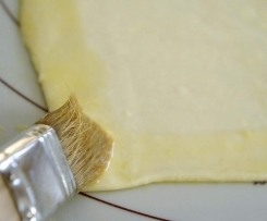 Pre-heat your oven to 180 degrees (fan forced). Keep your thawed puff pastry sheets covered by cling wrap or a damp tea towel as you work with each piece, to ensure it doesnt dry out