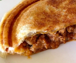 This was great! Made only half batch, but used nearly whole amount of mint sauce (cause I love mint sauce!). Used frozen pastry & my very old Sunbeam pie maker. Mixture made about 8 pies. We loved them.
