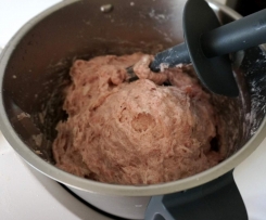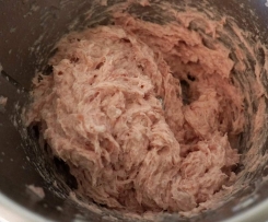 I have looked everywhere for some "grain" free or GAPS friendly small goods, ones without even gluten free rice flour. And the result has left me very hungry… So I decided to make my own! Now a Leberkäse for those who have not had it is like a big loaf of good Frankfurt sausage. You slice it and eat it cold or hot, steamed and juicy or gently fried until crispy. Amazing. So with a lot of research I have made this plain version, as well as an enriched on with actual liver (as the name does imply). Rather that use chemical pickling salts to get the pink colour, I used home made fermented beetroot Kvass. You could just use a little beetroot puree or juice or even powder. This really is essential for the right colour. I could have mixed the pork myself in the Thermomix, but I opted to get some pre minced from my local butcher who only sells it that way (minced to order). To cut out some of the work for poor Thermy and make it a quicker job.