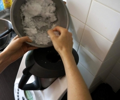 - First crush the ice in the mixing bowl for 10 secs./speed 10. Set aside in the freezer.