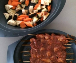 2. Once chicken has marinated for at least an hour, thread chicken onto skewers and place into top Varoma tray.