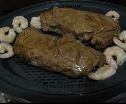 Moreta, this recipe (minus the prawns) is posted on forumthermomix.com and that is where I made it from. When I saw the recipe on this forum, I thought I would comment that steamed steak is very tasty as I am sure most people would not think so.