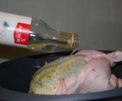 7. Remove from TM and drizzle with olive oil – you can use a brush to make sure the chook is lightly coated. Place into the oven for 20 – 30 minutes to crisp up. I sat the chook onto a (cooling) rack in the tray so that it was elevated from the baking tray.