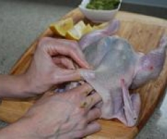3. Once the skin is separated stuff the herb butter into the chook between the skin and breast. Use all of the mix half on each side. You can now rub the top of the chook to help smooth all of the butter out into the chicken.
