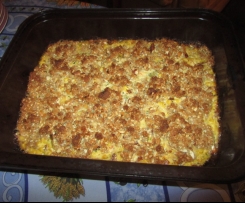 Converted by Roslyn Teirney from a recipe shared by Mrs Edward Schlaefer - Columbia, South Carolina, USA, 1977. I find this crumble-type casserole very useful for using up leftover veges after a roast dinner too. I sometimes even include leftover dip. There is a pleasant contrast between the creamy sauce with the vegetables and the crunchy topping. The original recipe called for a can of undiluted celery soup in the casserole, but I prefer to leave that out.