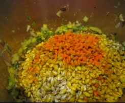 Stir through onion for 2 minutes at 100 degrees on speed 2 - MC on. Barley should be glossy.