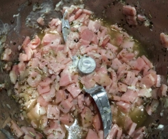 2. Add diced bacon, garlic salt and mixed herbs 4mins/100*/