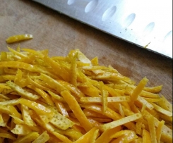 3. Whilst the fruit is simmering in the pan, cut the strips of zest into thin strips by hand and add them to the TM bowl.