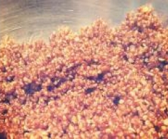 Fill the jug with 900g of water and 1/2 tsp salt. Pop the rinsed red quinoa into the steamer basket. Place lid and MC on. Cook for 15 minutes on Varoma temperature on Speed 2.