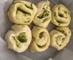 "Dough mode" . Add extra bakers flour if dough is too sticky. On your bread mat roll dough into a large rectangle shape & spread with pesto.