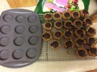 A hit with the kids. Squished tablespoons of the mixture into little shallow silicone mould things I have. Added cranberries into the mix. Then pressed a dark chocolate melt button ontop of each one. These turned out quite crumbly, so I'm not too sure how you would go cutting a slice without it disintegrating, very happy I did the individual moulds. Delicious.