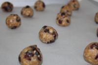 5. Roll and squeeze walnut sized balls of the mixture and place on lined baking trays a couple of inches apart - mixture will spread during baking.