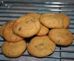 Made these today using only three quarters of sugar amount and substituted peanut butter chips instead of chocolate. They were so yummy!