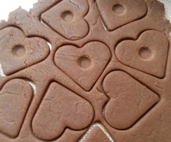 Roll out dough to 5mm thickness and use your favourite cookie cutter. I used the small heart to represent the traditional decorated Lebkuchen you can buy at Christmas time in Germany.