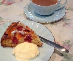 "Closed lid" . Mix until all ingredients are combined. Speed 5, 30 sec.Spoon mixture into prepared tin. Smoothing out a little. Top with the sliced peach and raspberries. Pressing some berries into the mixture slightly.
