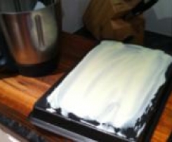 Remove baking paper from sponge cake and re-insert sponge cake back