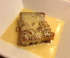 Pour mixture into oven safe dish and bake for +/- 30min until pudding is golden brown. Remove from oven and poke pudding full of holes with a fork and pour half the sauce over the pudding. Make sure you have enough holes so that the sauce can seep through the pudding. Keep remainder of sauce to pour over pudding when served.