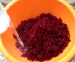 Add 60g of the coloured water, the glucose syrup and the gelatine into the TM bowl. Disolve the gelatine 37degrees, 2 mins, speed 1 .