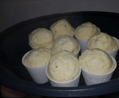 8. use spray oil on 8-10 ramikins (i used the thermomix dariole moulds) 3/4 fill with mixture. add water to bowl 25min varoma speed 4